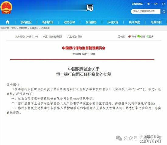 白雨石具有较好的学历,有国有大行的职责训戒,又历任恒丰银行总行多岗亭的纯属。作为“80后”的他有诸多上风加抓,故而劳动生计申明鹊起、连接高升也可谓是预思之中了。2022年6月起升任恒丰银行的党委委员,又在2023年1月17日认真获取监管部门批准、出任该行的副行长一职。