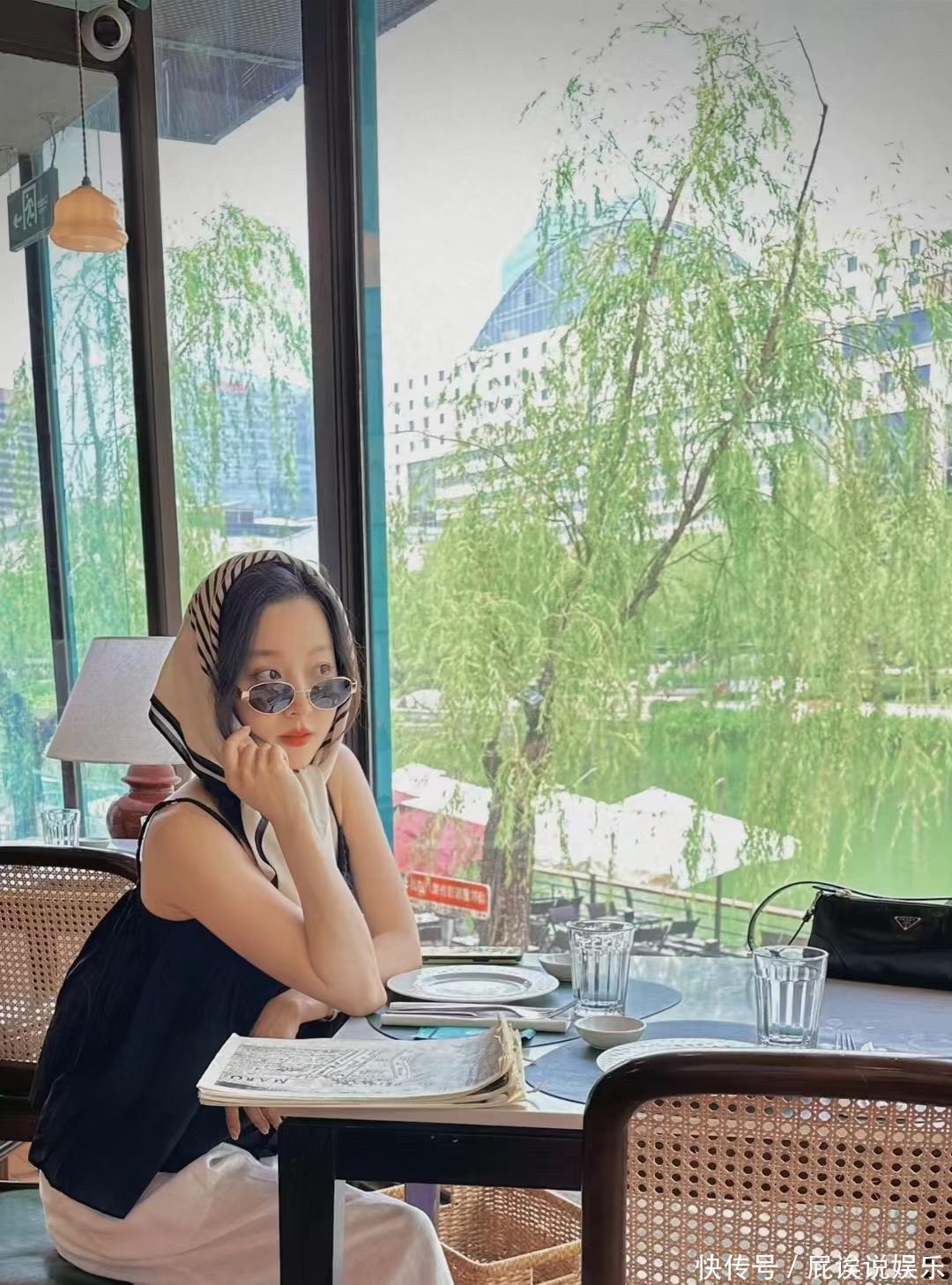 偶尔尝试贵妇风的穿搭,把丝巾系在脑袋上,有点萌、还怪可人的,这样的夏露差点让东说念主认不出来,和平日里的形象反差还挺大的。