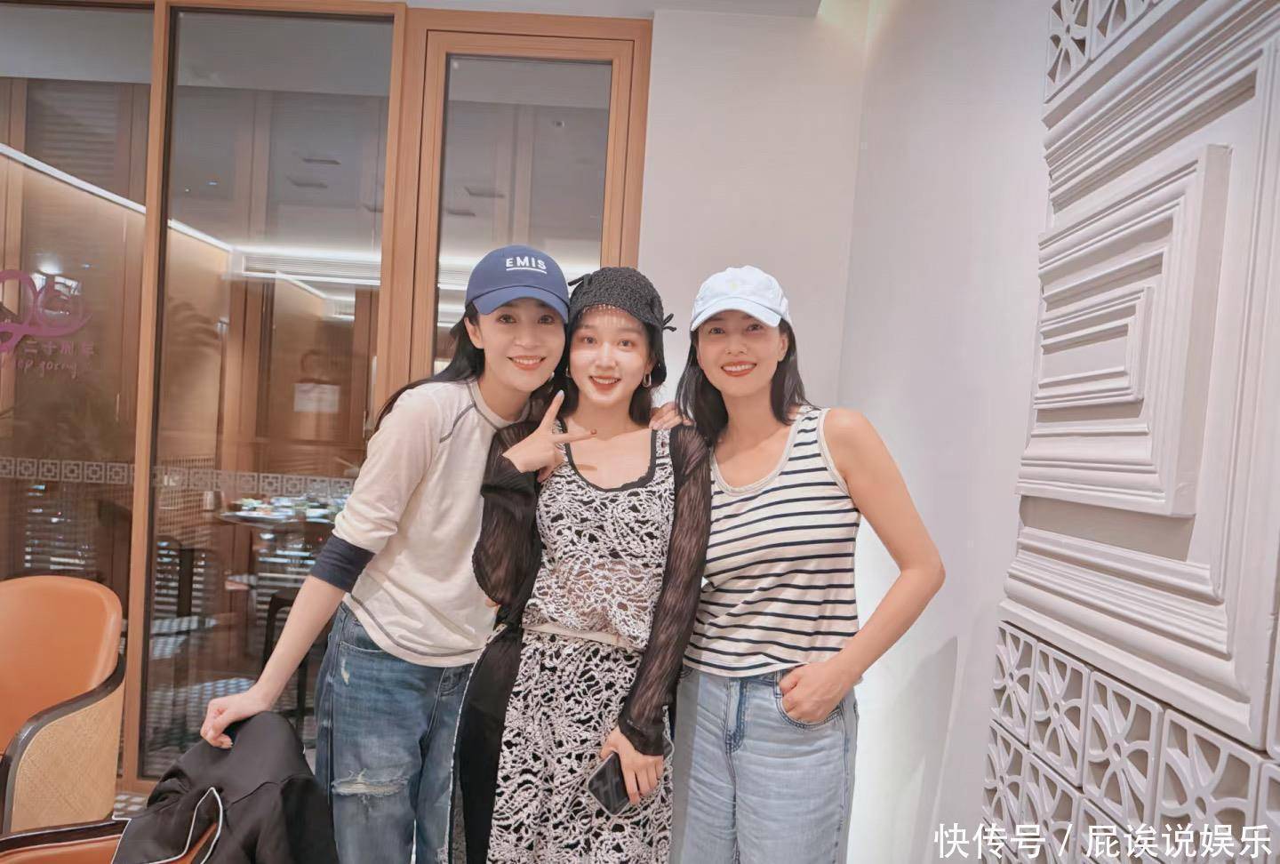 龙嫂还和高圆圆合影了,高圆圆衣着条纹背心、牛仔裤,笑得稀疏柔顺。夏露的圆脸很可人,生了俩娃小数年事感齐莫得。