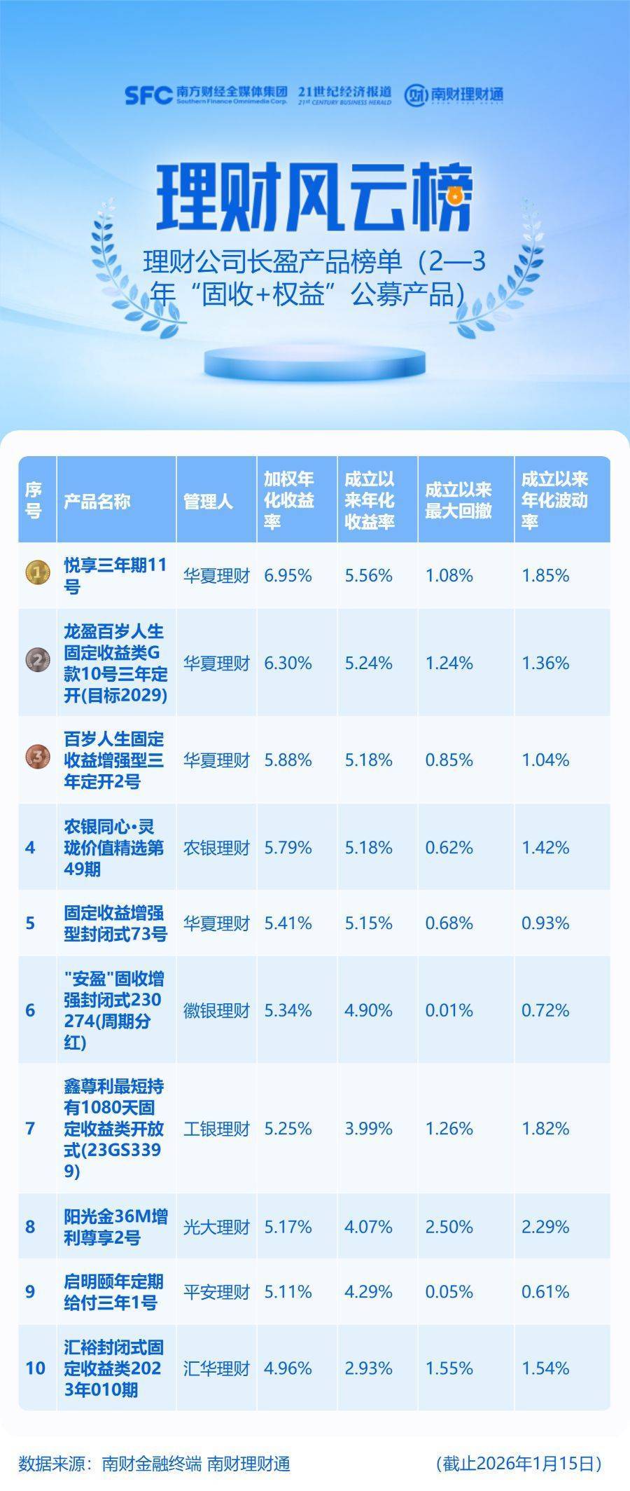 榜单数据讲明:统计对象为答允公司刊行的建造满1年的投资周期在2—3年(含)的公募固收+权柄居品,同系列同投资周期居品保留一只,加权平均收益率筹办样式为“5%近1月年化收益率+10%近3月年化收益率+15%近6月年化收益率+30%近1年年化收益率+40%建造以来年化收益率”,排行依据为加权年化收益率,数据筹办截止时辰为2026年1月15日。榜单排行由答允通AI全自动化及时排行,如您对数据有疑问,请在文末有关助理进一步核实。