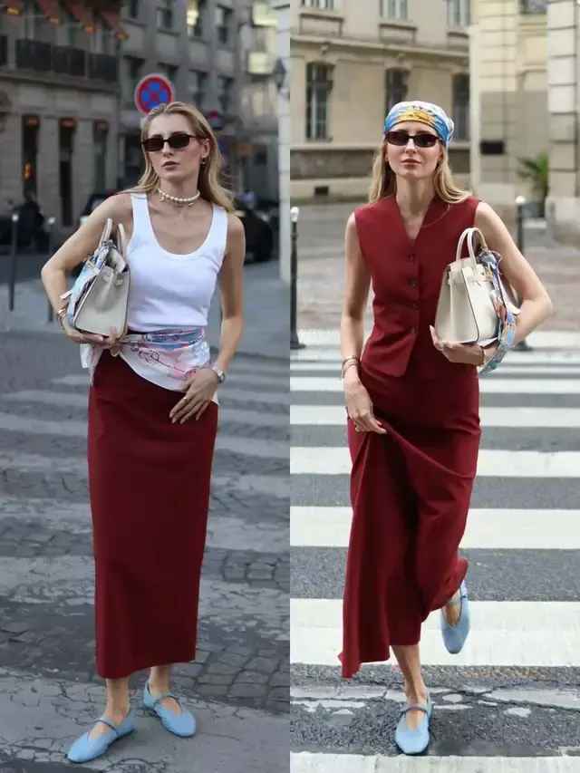 高档感不啻在衣服版型与面料陡立功夫,更藏在色调的领路里,孤苦红色调马甲裙,配上一对雾霾蓝的玛丽珍鞋,冷暖色调组合,温柔又配合。